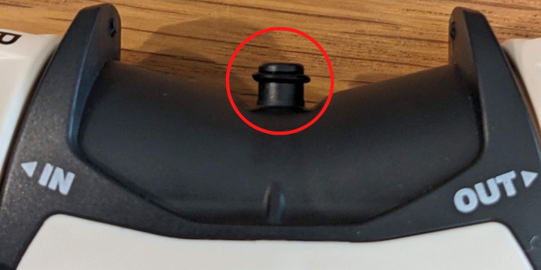 ホイールをA1に設定していただき、マウスピースを接続部からアウト側に息を吹きこみます。また、イン側のダイヤルからも息を吹きかけて飛ばします。朝夕トレーニングしているものは、これでおおよそ水気が飛ぶとのことです。